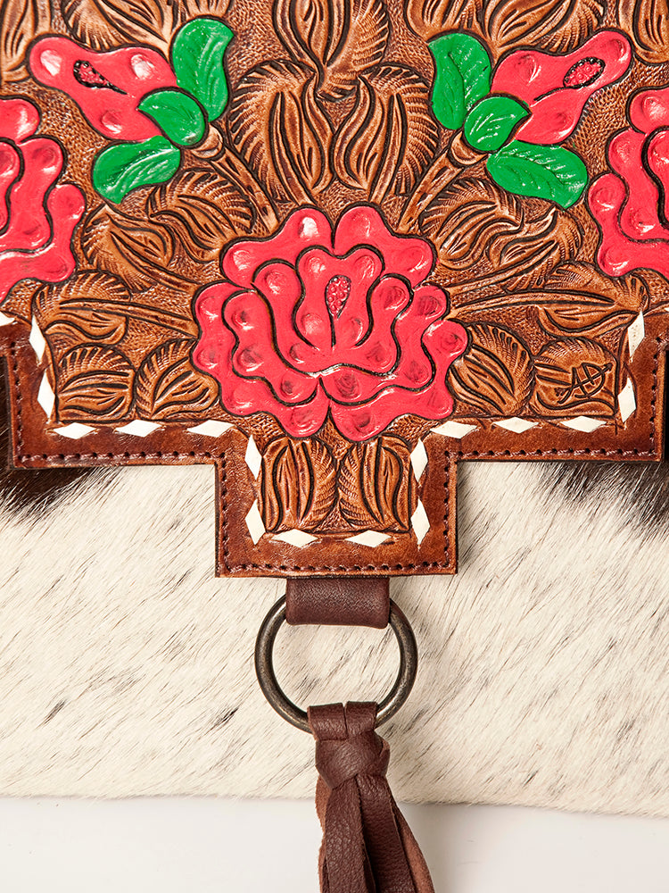American Darling Cross Body II Hand Tooled Hair On Genuine Leather Women Bag Western Handbag Purse