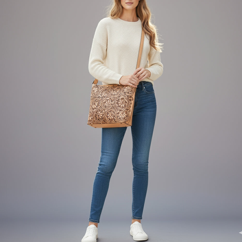 American Darling Large Crossbody Hand Tooled Genuine Leather Women Bag Western Handbag Purse