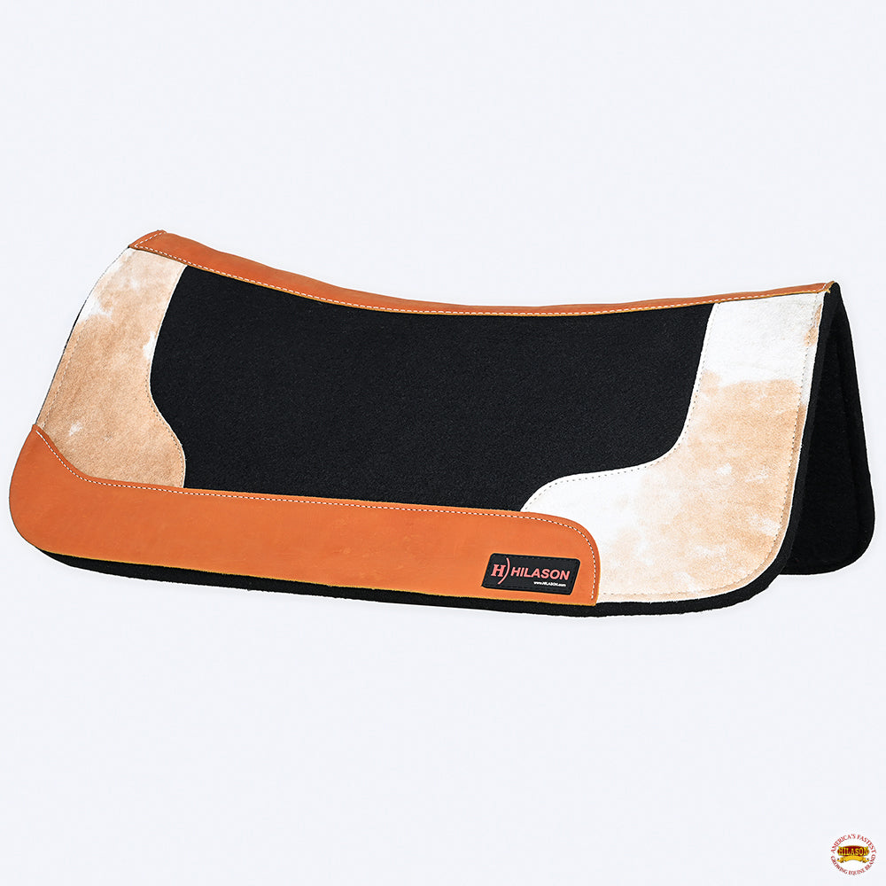 Hilason Western Wool Felt Horse Saddle Pad W/ Cowhide Leather - Black
