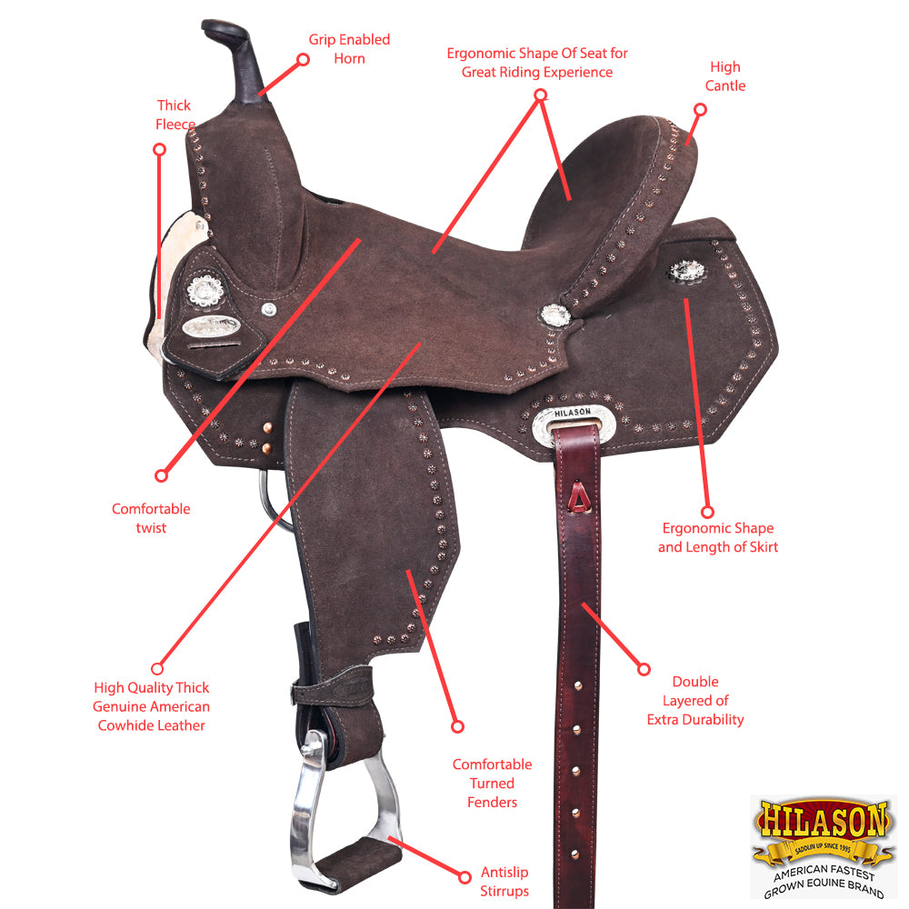 • The HILASON Saddle Is A Remarkable Equestrian Product Designed To Provide The Utmost Comfort, Performance, And Style For Both Horse And Rider. Renowned For Its Exceptional Quality And Attention To Detail, This Saddle Bears The Prestigious HILASON Brand Name, Symbolizing Excellence In The World Of Equine Equipment. Crafted With Precision And Expertise, The HILASON Saddle Showcases A Perfect Blend Of Functionality And Aesthetics. Every Aspect Of Its Construction Has Been Carefully Considered To Ensure The Highest Level Of Comfort And Durability. From The Premium-Grade Materials To The Intricate Stitching, This Saddle Exemplifies Superior Craftsmanship.