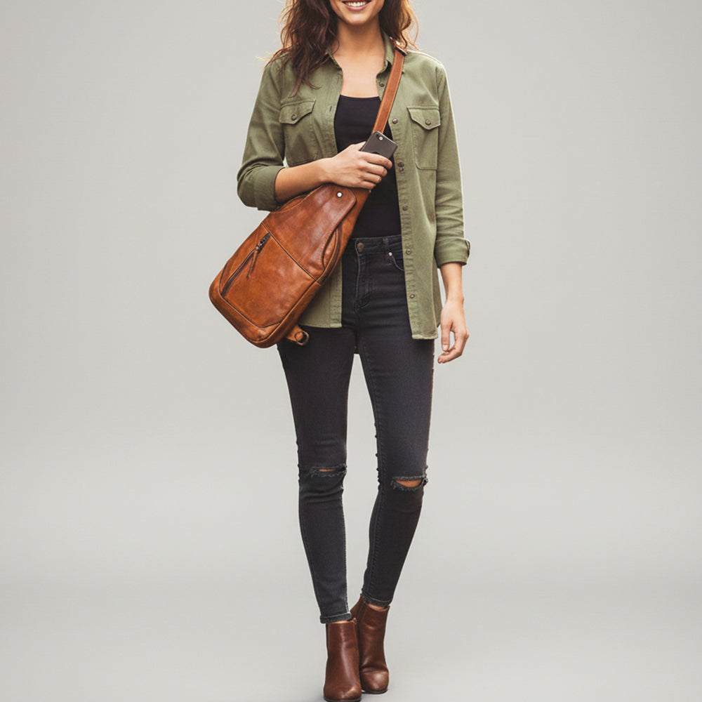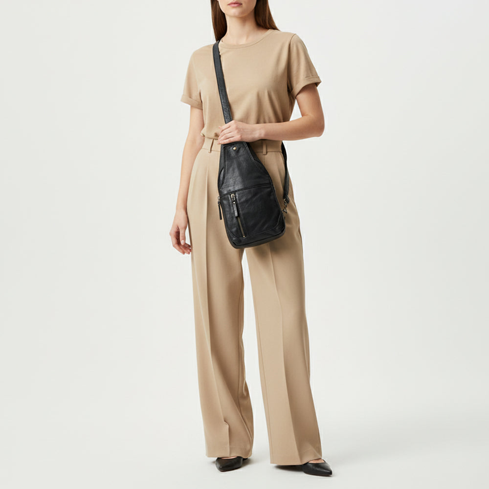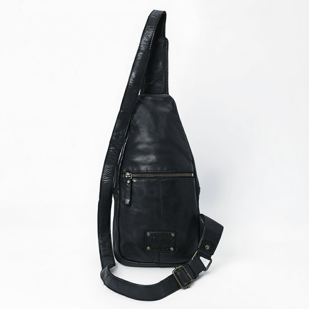 Spaghetti Western Swc202Blk Sling Vintage Handmade Drum Dyed Genuine European Cowhide Leather Women Bag Western Handbag Purse