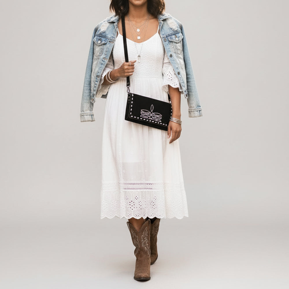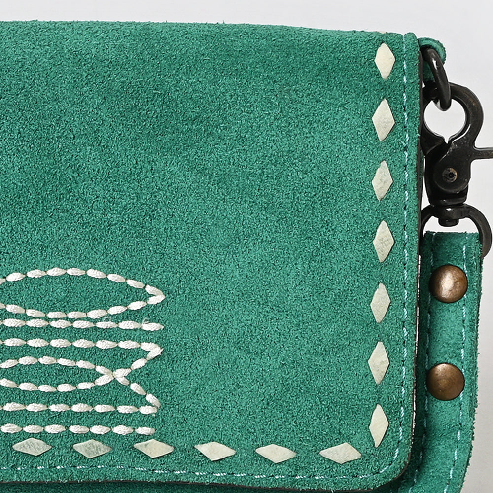 American Darling Western Small Cross Body Suede Genuine Leather Handbag Purse Wallet Bag For Women Girls Black