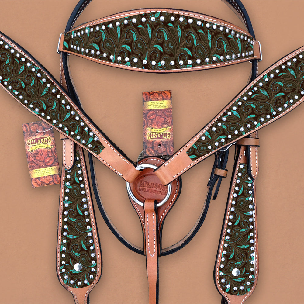 • This Is A Unique Combination Of Gorgeous Headstall And Breast Collar Constructed Of Hand Picked High Quality Thick 100% Genuine Leather. HILASON Uses The Best Quality American Cowhide Leather To Make These Wonderful Products.They Are Carefully Hand-Made With All The Required Precision And Care To Provide The Most Classic Look And High Durability. The Edges Are All Hand-Dyed And The Hardware Used Is Solid Stainless Steel. They Are Ideal For A Standard Size Horse And Have Some Room For Adjustments.