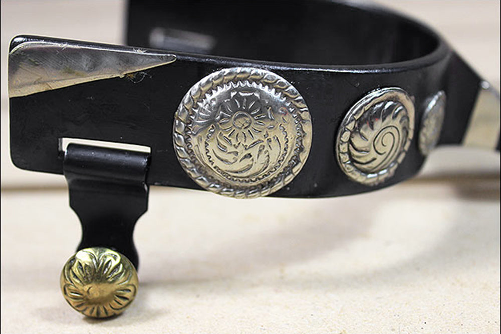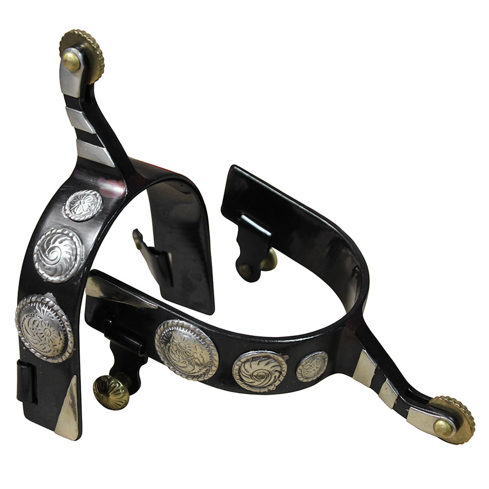 Hilason Black Steel Show Spurs Mens Size German Silver Conchos & Brass Rowel