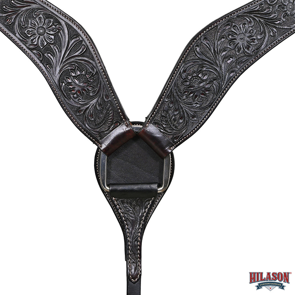 HILASON Western Horse American Leather Breast Collar Tack Hand Tooled Black