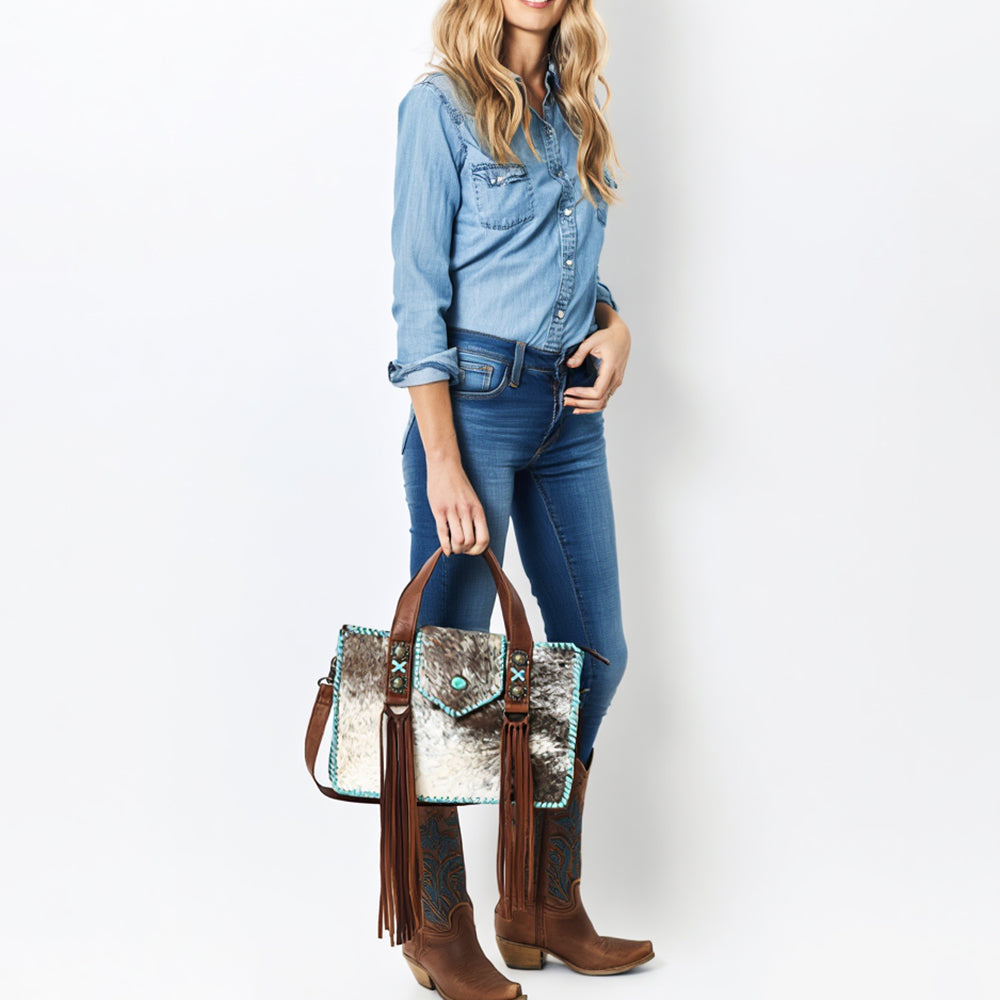 American Darling Western Tote Bag Handcrafted from Hair-On Cowhide & Genuine Leather