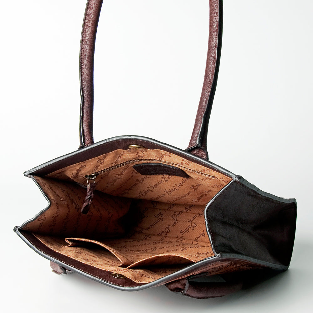 • Luxurious And Western: Handcrafted American Genuine Leather Bag Is Designed By American Darling Here In The Heart Of Texas. These Gorgeous Creations Deliver A Blend Of Western Culture And Heritage Along With The Latest Fashion And Trendy Appeal. Eco-Friendly Genuine Leather Is Handpicked And Sourced From Some Of The Best Tanneries In The World. The Bag Is Made By Highly Experienced And Skilled Craftsmen Of The Industry . Size: 12In (H) X 11In (W) X 4In (D)