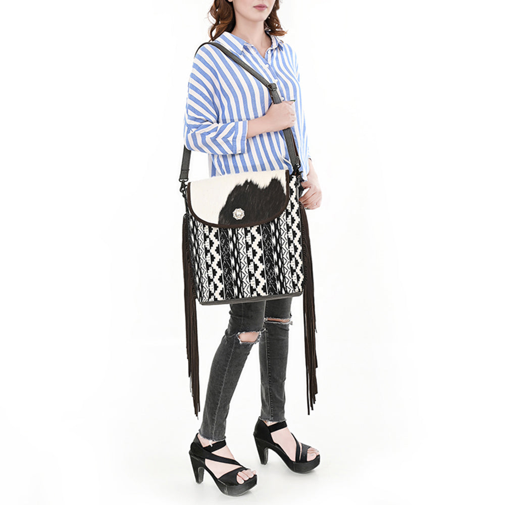 OHLAY Tote Hair On Upcycled Canvas Genuine Leather Women Bag Western Handbag Purse