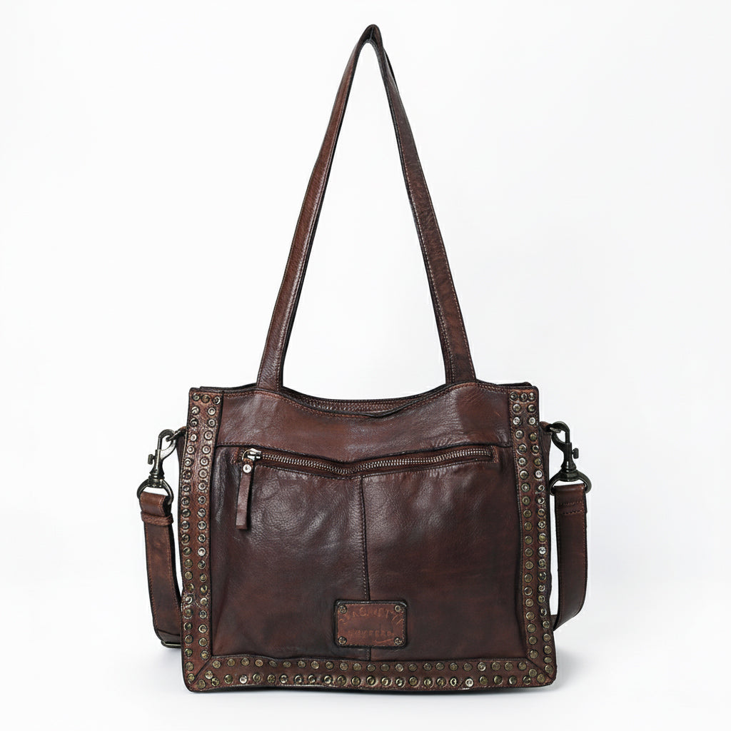 Spaghetti Western Swc133Brn Tote Vintage Handmade Drum Dyed Genuine European Cowhide Leather Women Bag Western Handbag Purse