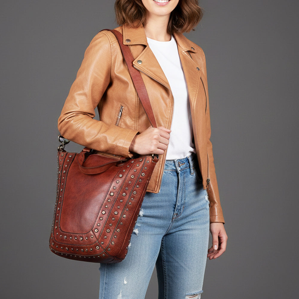 Spaghetti Western Swc134Cg Tote Vintage Handmade Drum Dyed Genuine European Cowhide Leather Women Bag Western Handbag Purse