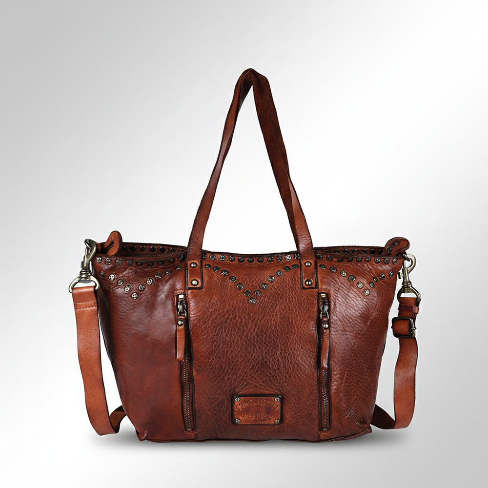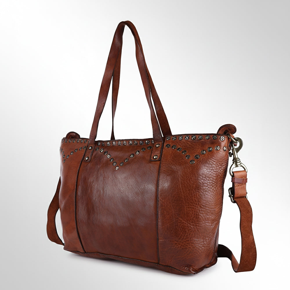 Spaghetti Western Swc135Btan Tote Vintage Handmade Drum Dyed Genuine European Cowhide Leather Women Bag Western Handbag Purse