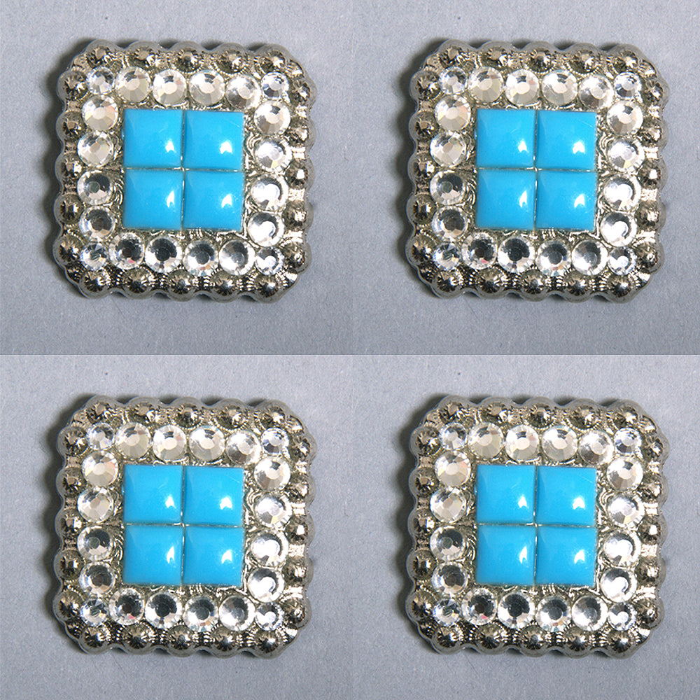 1 Pcs Hilason Turquoise Stone Clear Crystal Square Nickle Concho Saddle