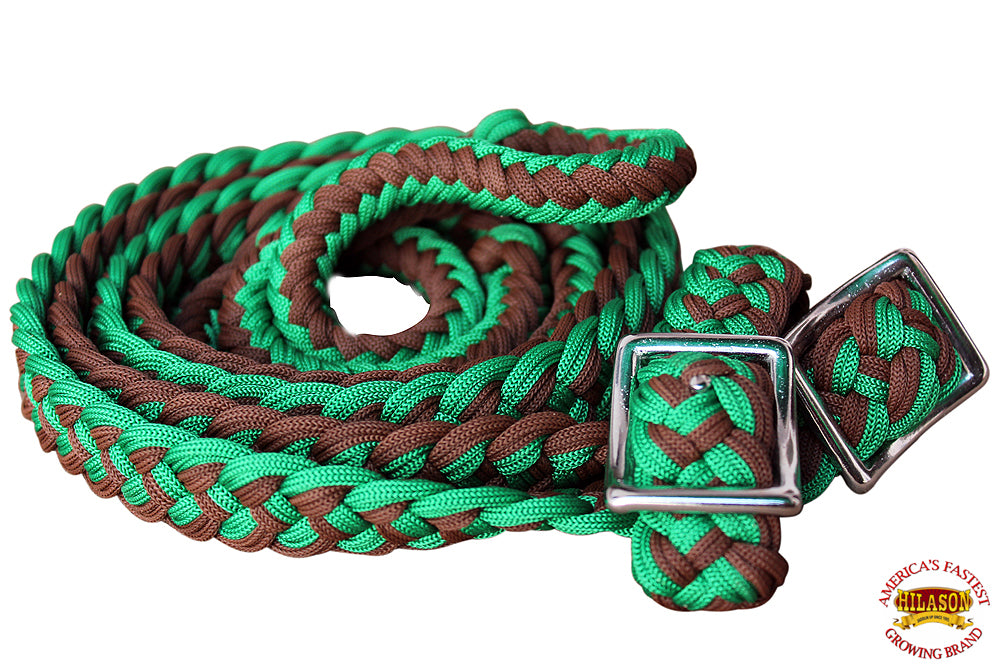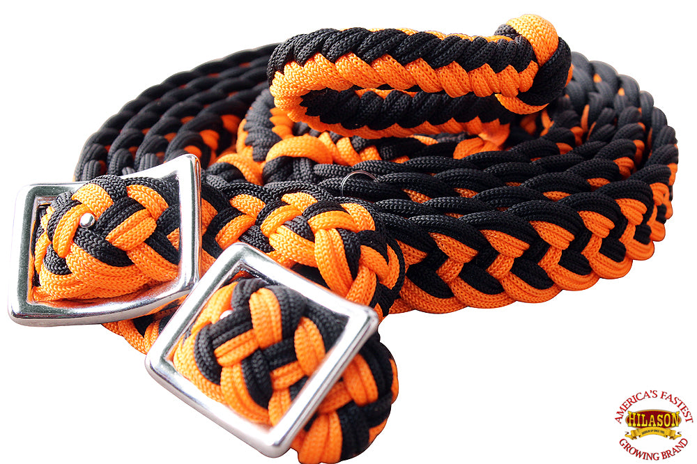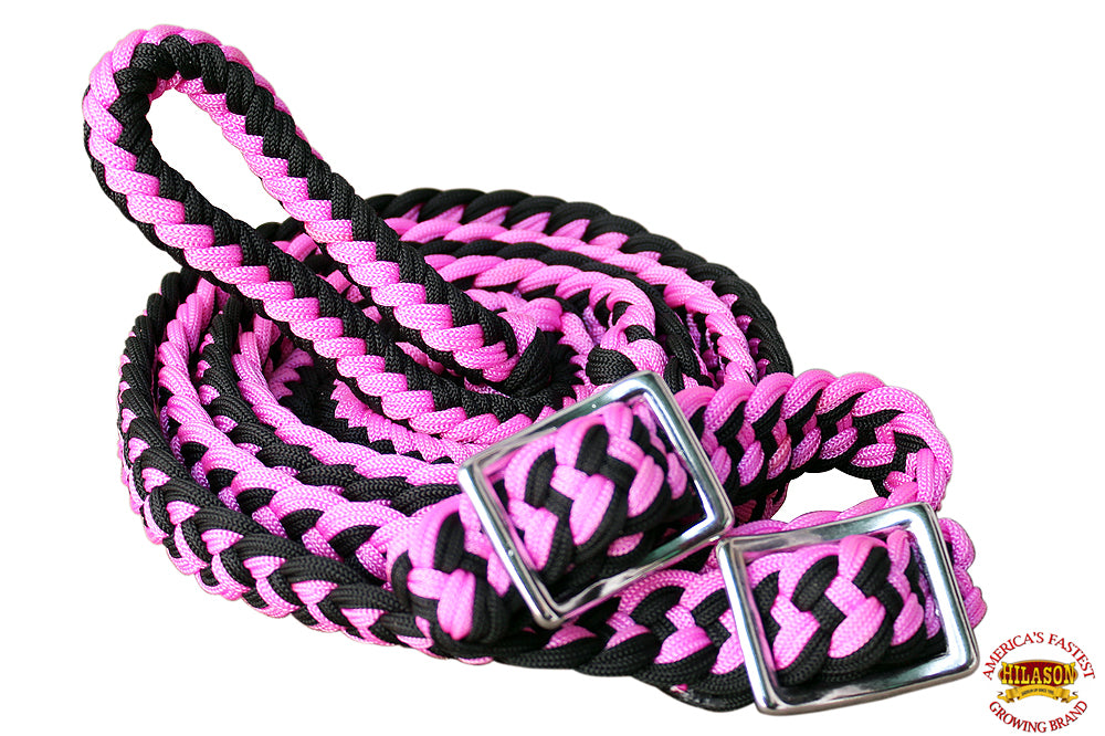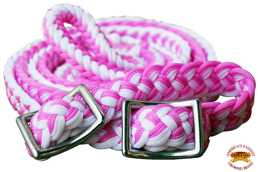 1" X 8Ft Hilason Braided Poly Barrel Horse Racing Reins Flat Grip Knots