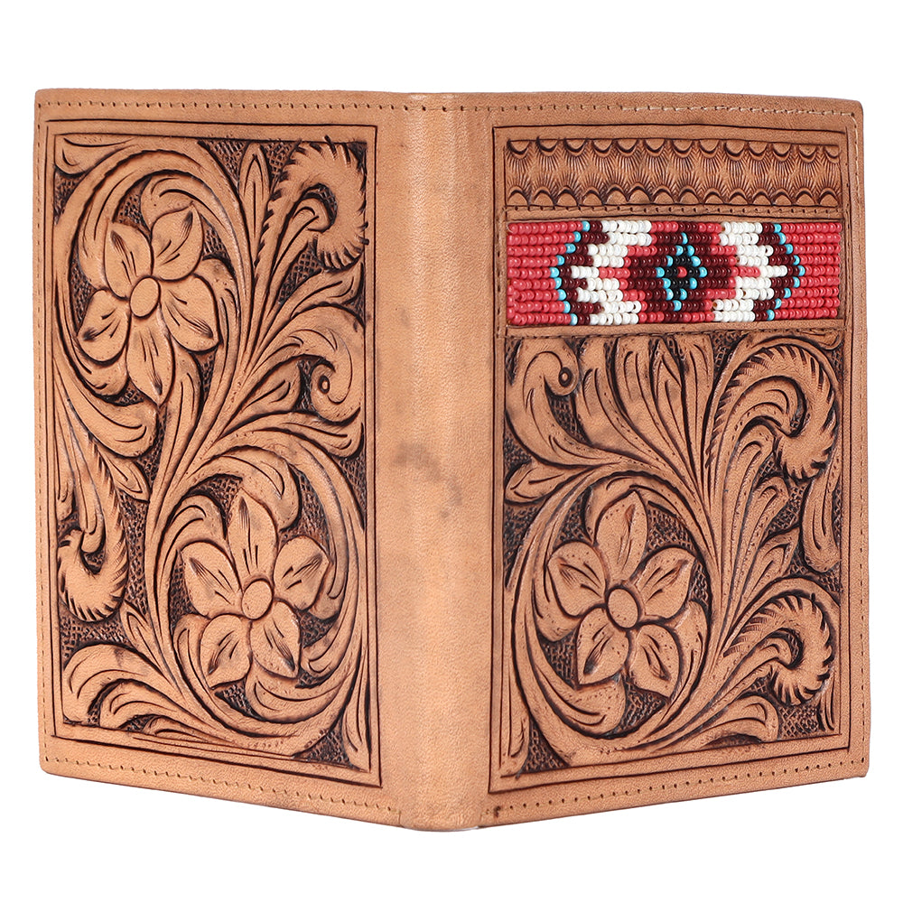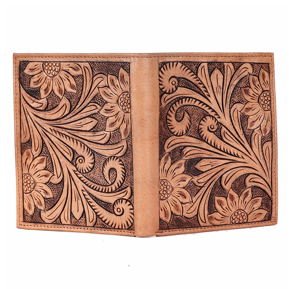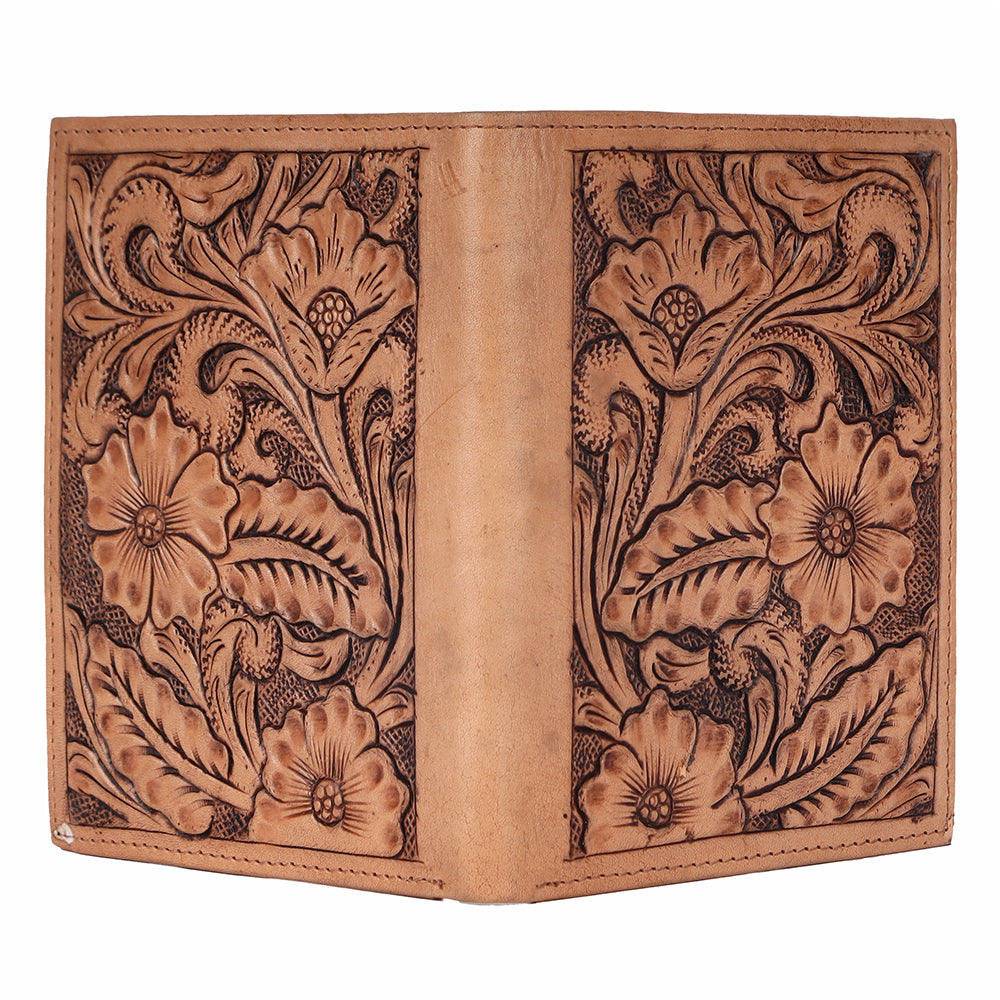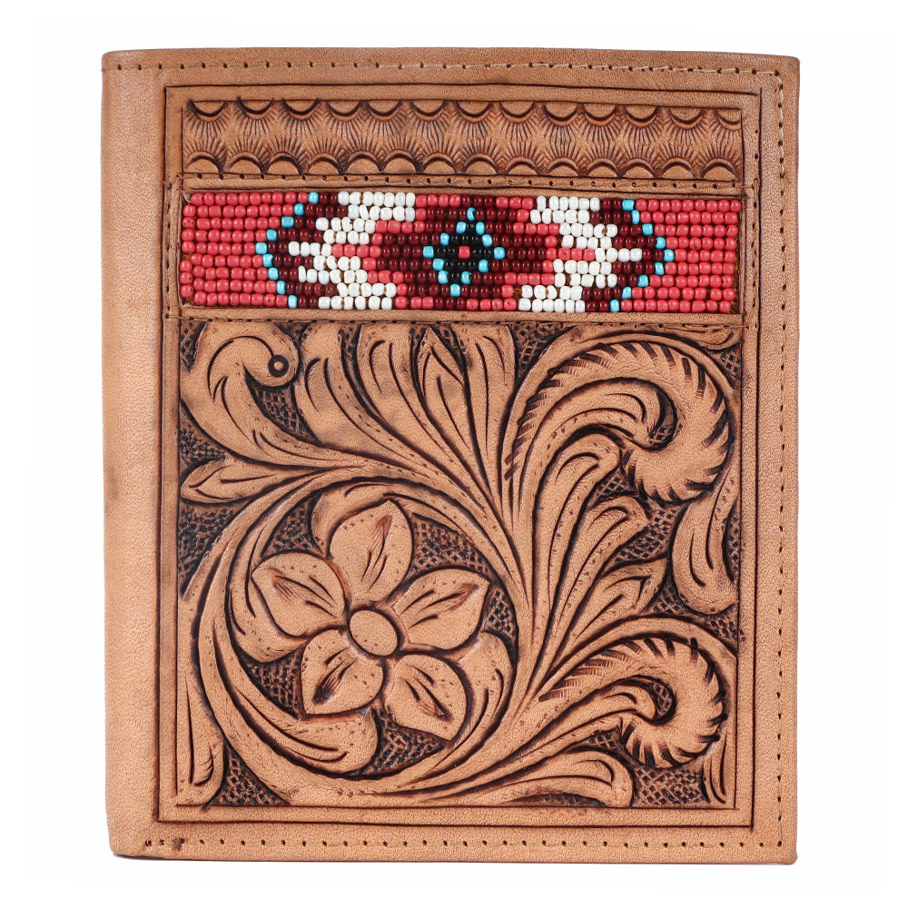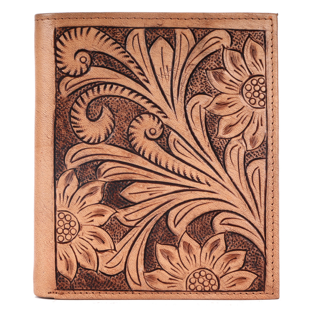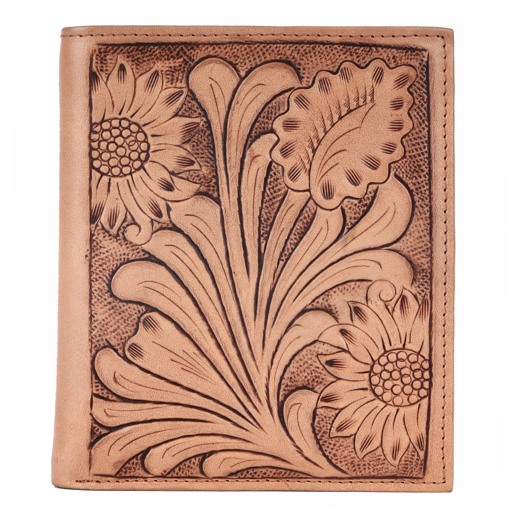 BAR H EQUINE Hand Carved Unisex Bifold Wallet Genuine Hair-On Leather