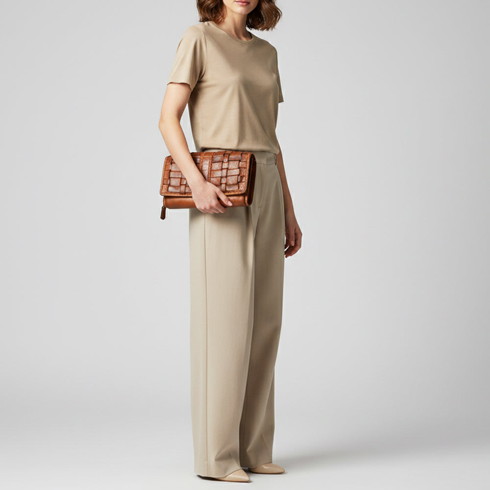 Spaghetti Western Swc447Cg Wallet Vintage Handmade Drum Dyed Genuine European Cowhide Leather Women Bag Western Handbag Purse