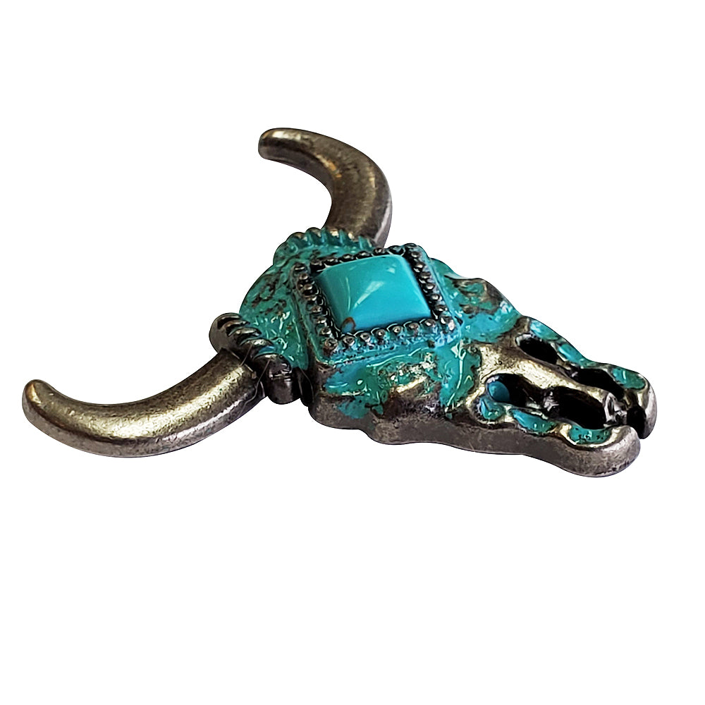 1 1/2" Hilason Western Horse Concho Antique Nickel With Turquoise Steer Head