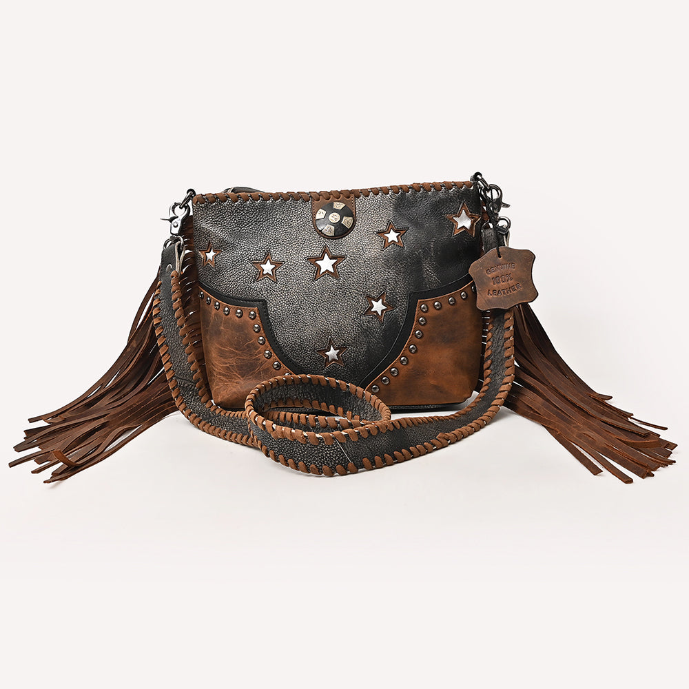 • This Crossbody bag is complemented with a beautiful leather fringe giving it a western look.