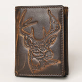 AMERICAN TANNER Genuine Leather Hand Burnished Trifold Wallet For Men Women H4.25 X W3 D0.5