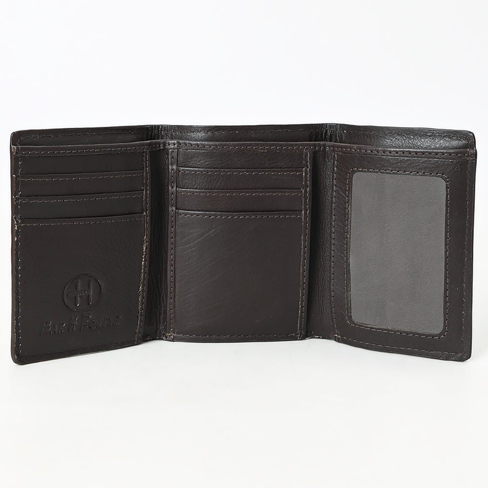 BAR H EQUINE Rodeo Steer Head Bifold & Trifold Wallet For Men Women Genuine Leather Brown