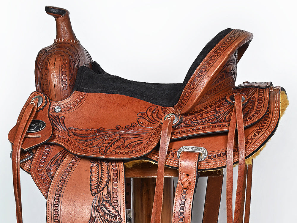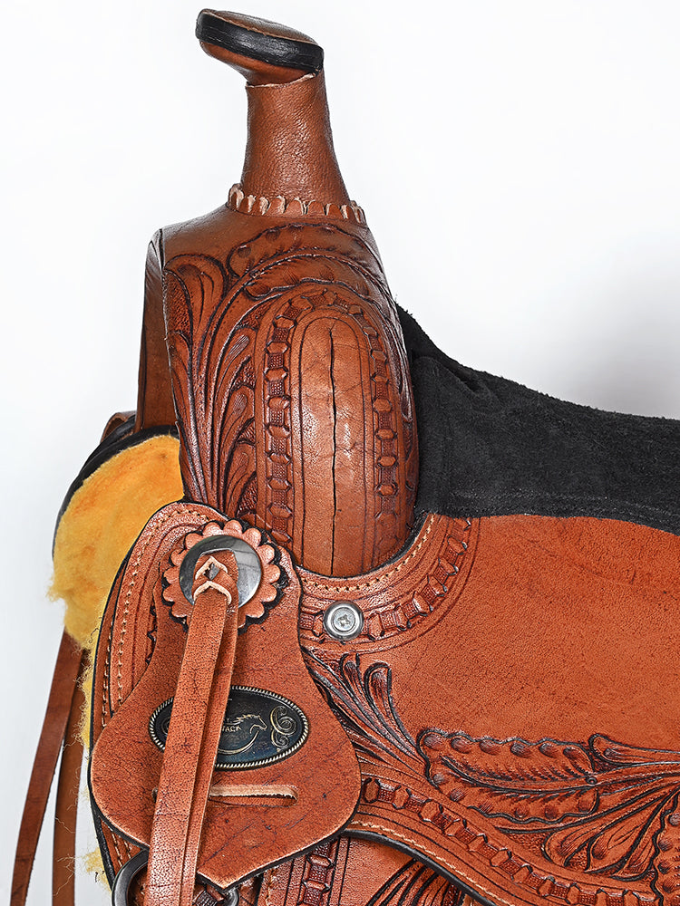 COMFYTACK Western Horse Barrel Racing Trail Pleasure American Leather Saddle With Tack Set Brown