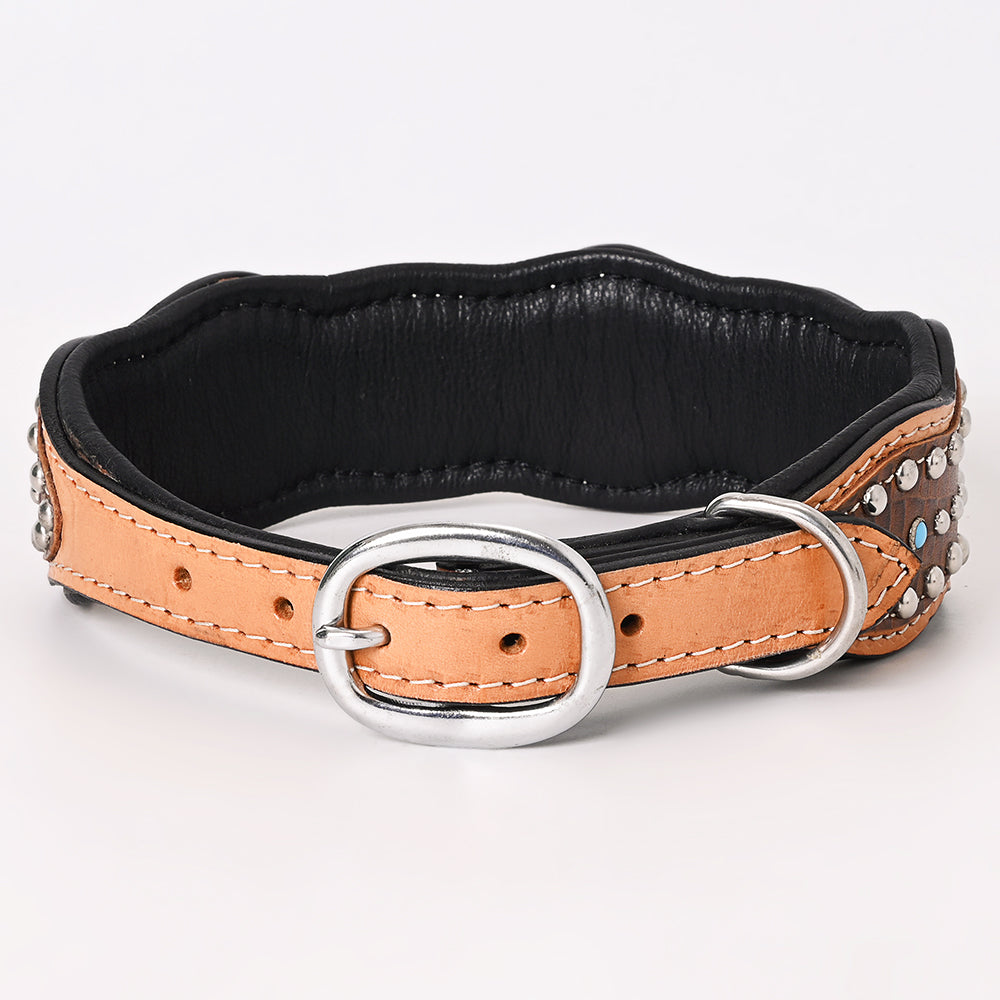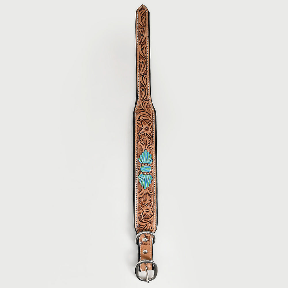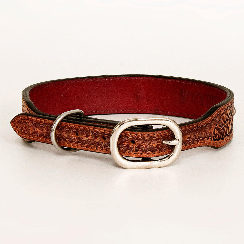 HIlason Genuine Leather Dog Collar Hand Tooled