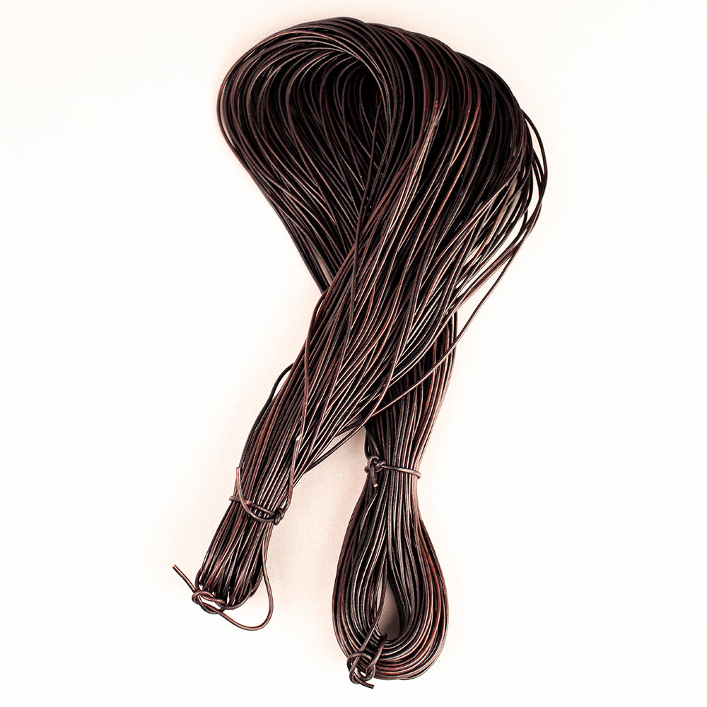 This high-quality, genuine Round Leather Cord is the perfect supply for all your crafting and repair needs. The durable leather offers excellent strength and flexibility, ideal for intricate work. Offered in convenient lengths of 2 feet and 3 feet, you can select the right size for jewelry making, lacing custom garments, or repairing small accessories. The rich, dark color and round shape make this cord a versatile and essential addition to any crafter's toolkit.