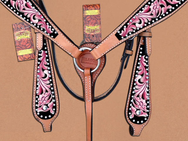 HILASON Western Horse Headstall Breast Collar Set American Leather Pink