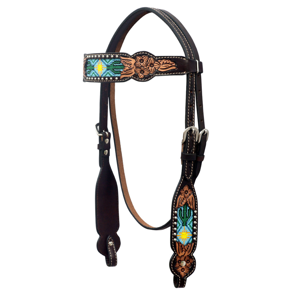 Hilason Horse Floral Hand Carved American Leather Breast Collar Headstall Beaded Brown