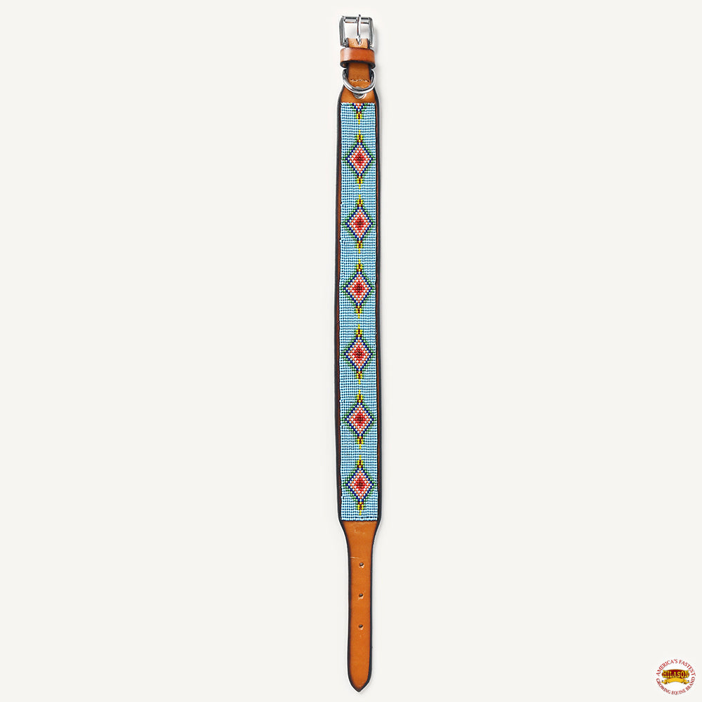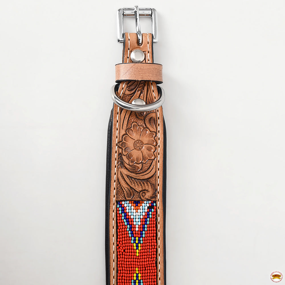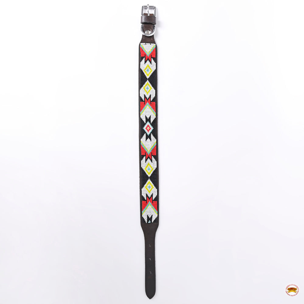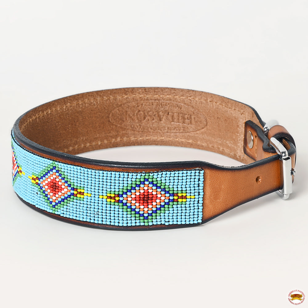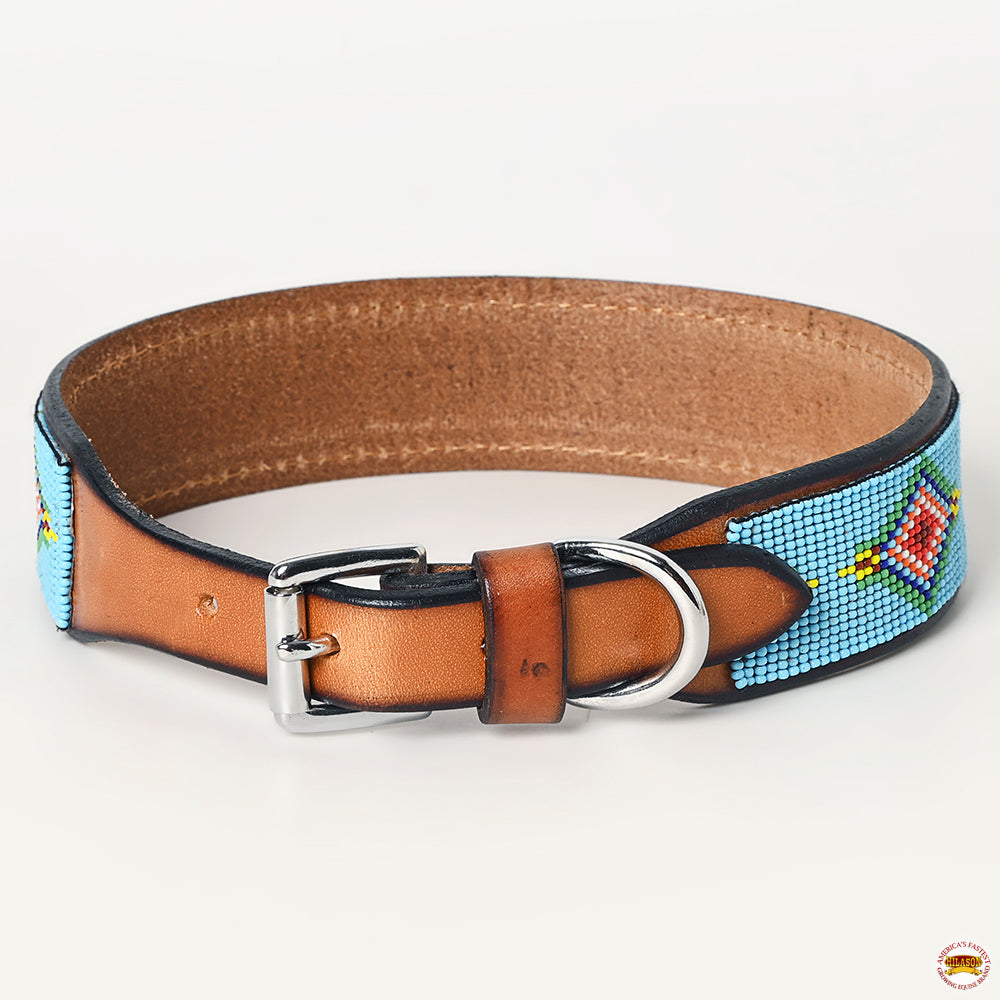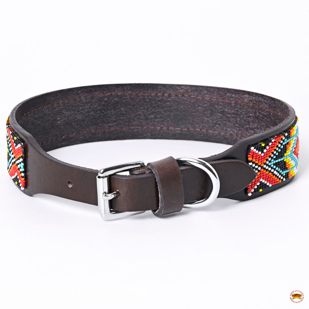 This Beaded Dog Collar Is A Stunning Fusion Of Genuine Leather And Intricate Beadwork, Resulting In An Exceptional Accessory For Your Beloved Pet. Meticulously Crafted, It Combines The Durability And Timeless Charm Of Leather With Vibrant, Handcrafted Bead Embellishments.
