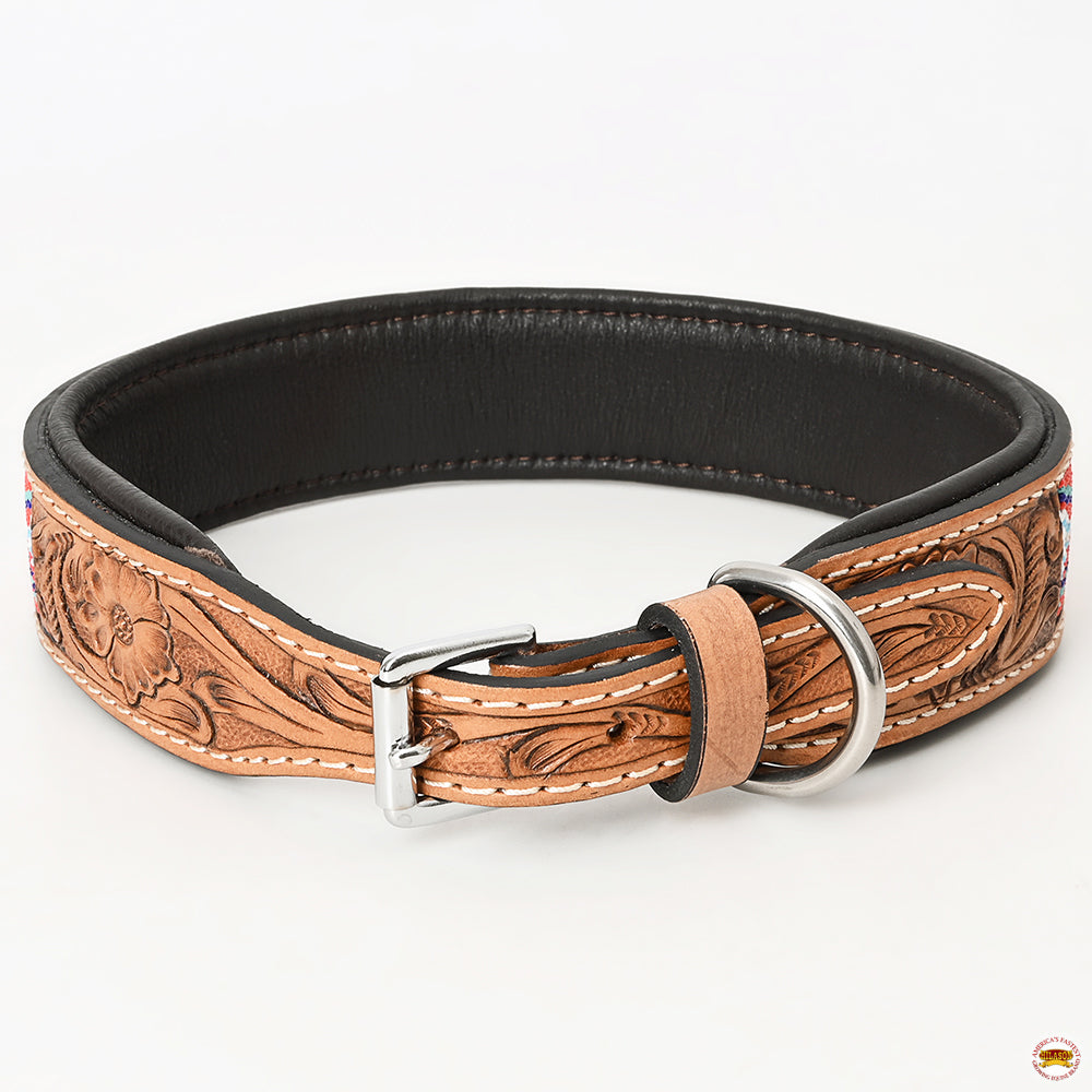 Hand-Tooled Details: The Collar Showcases Intricate Hand-Tooled Patterns, Showcasing Craftsmanship And Attention To Detail That Sets It Apart From Ordinary Collars.