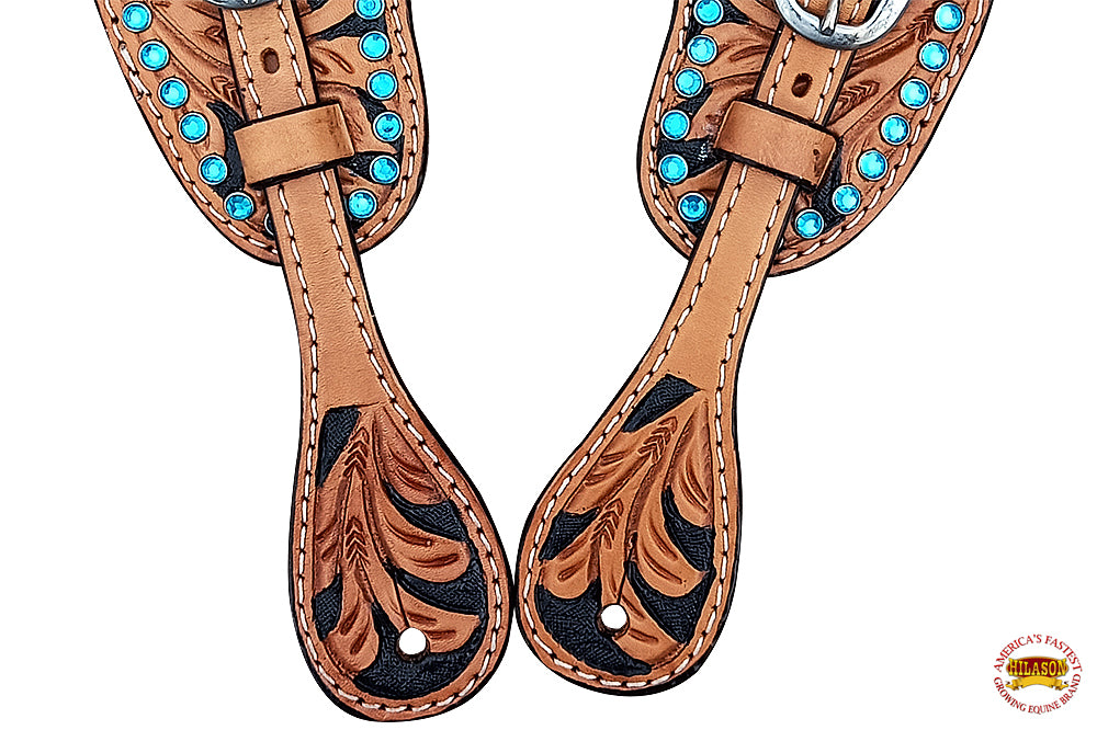 Hilason Western Leather Spur Straps Light Oil Black Hand Paint Inlay