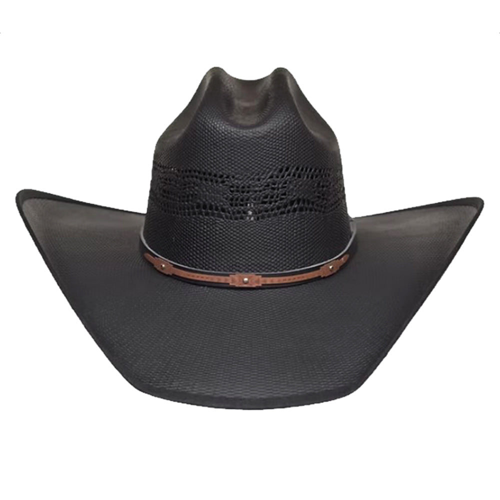 Step out in sharp, comfortable style with the Lonestar Menard Black Vented Cowboy Hat. Designed for the working rancher or the everyday Western enthusiast, this hat is made from durable, stiff straw that holds its shape beautifully. The crown features an all-around vented pattern for maximum breathability, keeping you cool during the hottest summer days. The classic Western shape provides ample shade, and the subtle, studded hatband adds a touch of polish. This black straw hat is the perfect blend of essential function, superior comfort, and timeless Western aesthetics.