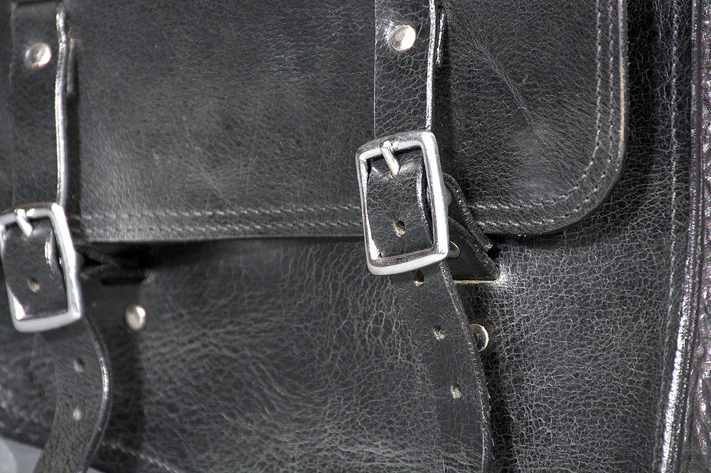 Hit the road with this rugged HILASON Top Grain Leather Motorcycle Saddle Bag. Crafted from durable Top Grain Rustic Vintage Leather, this bag is built in a rigid, structured design that maintains its shape. It features an asymmetrical height (14 inches high on one side, 7 inches on the other) and measures 14 inches wide by 4 inches deep. This Solo Biker Bag style is perfect for securely mounting to the side of your motorcycle, offering reliable storage with its secure flap and buckle closures.