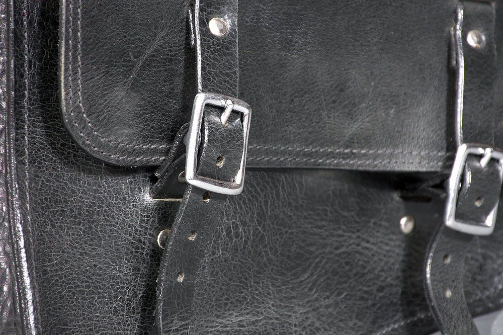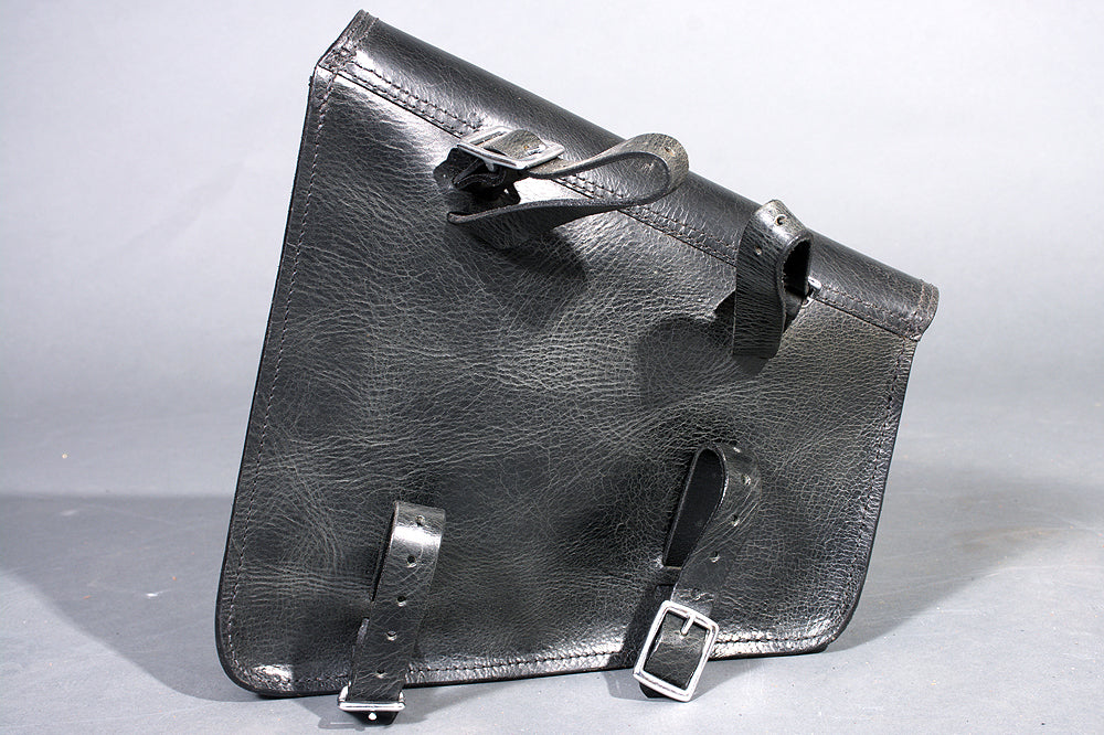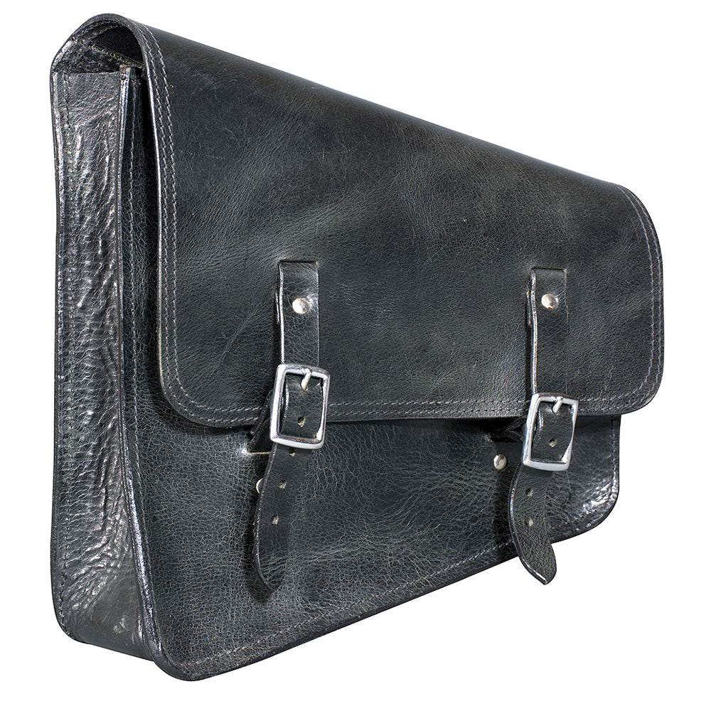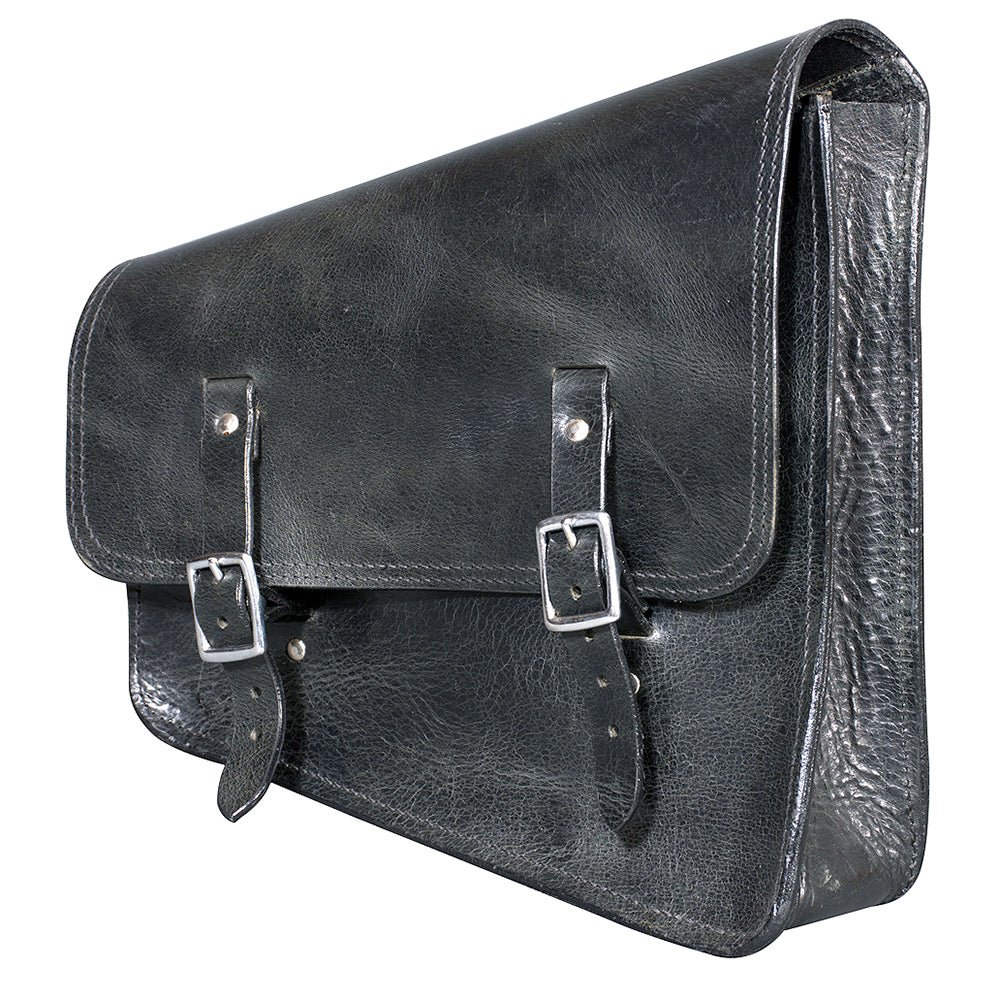HILASON Top Grain Leather Motorcycle Bike Right & Left Side Saddle Bag Rigid Flap Solo Biker Bag Black 14" Long