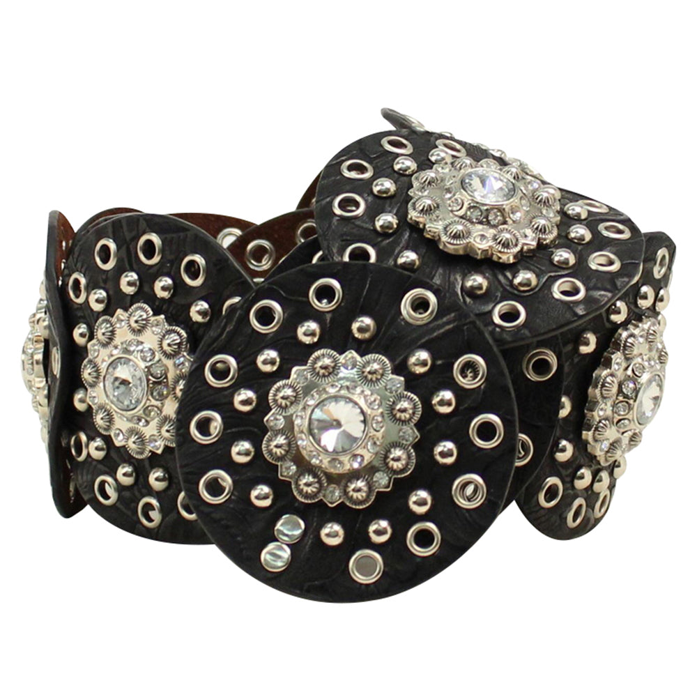 Nocona Women's Disc Concho Belt Sparkling Crystal Centers Silver Studs Medium