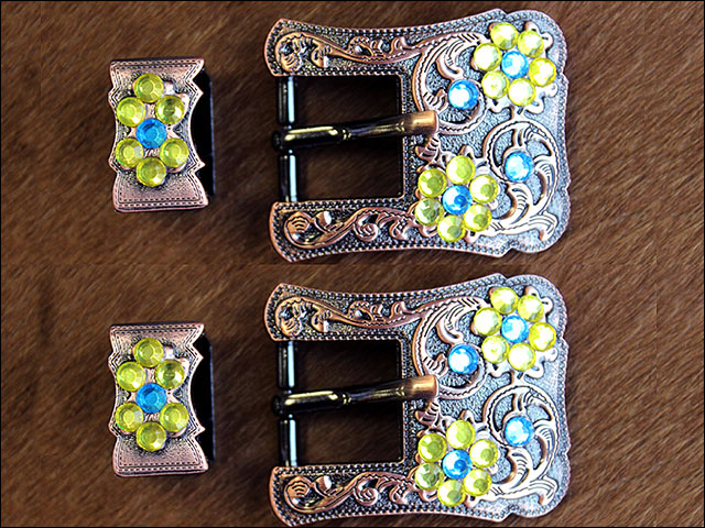 Hilason Screw Back Concho Capri & Lemon Crystal Floral Copper Buckle Set 3/4 Inch