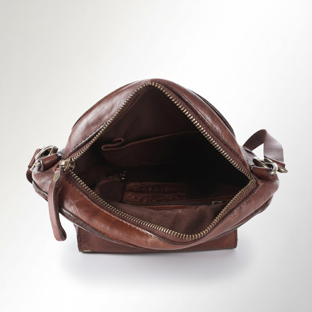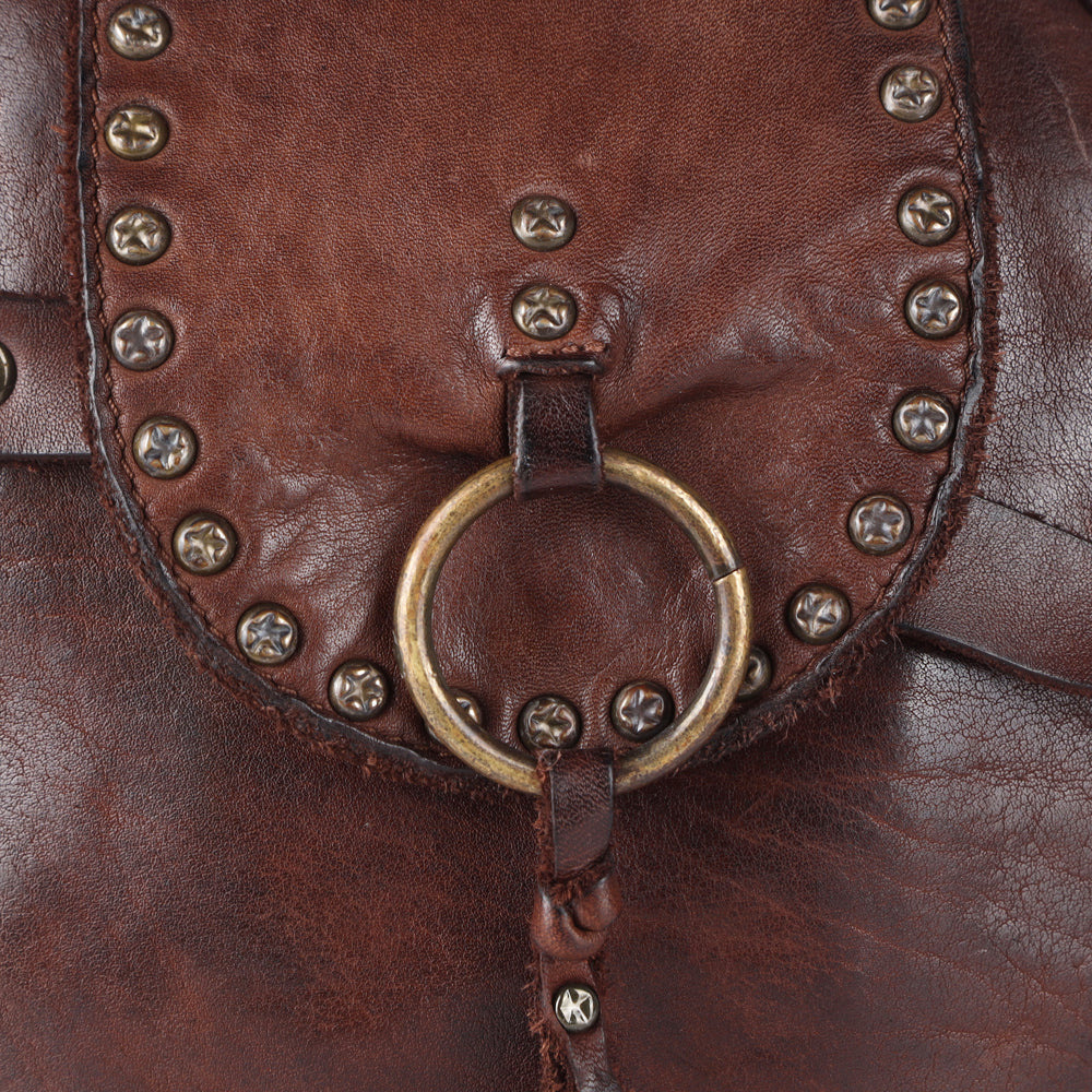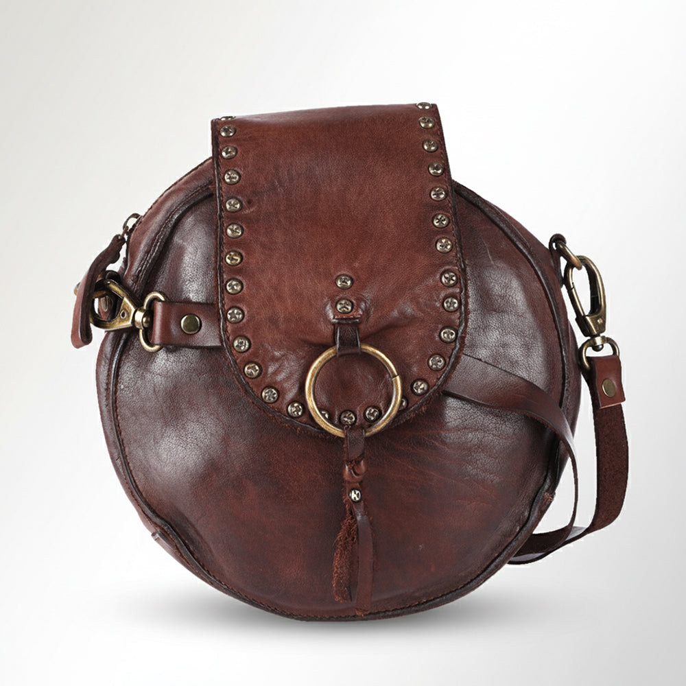 Spaghetti Western Swc152Brn Canteen Vintage Handmade Drum Dyed Genuine European Cowhide Leather Women Bag Western Handbag Purse
