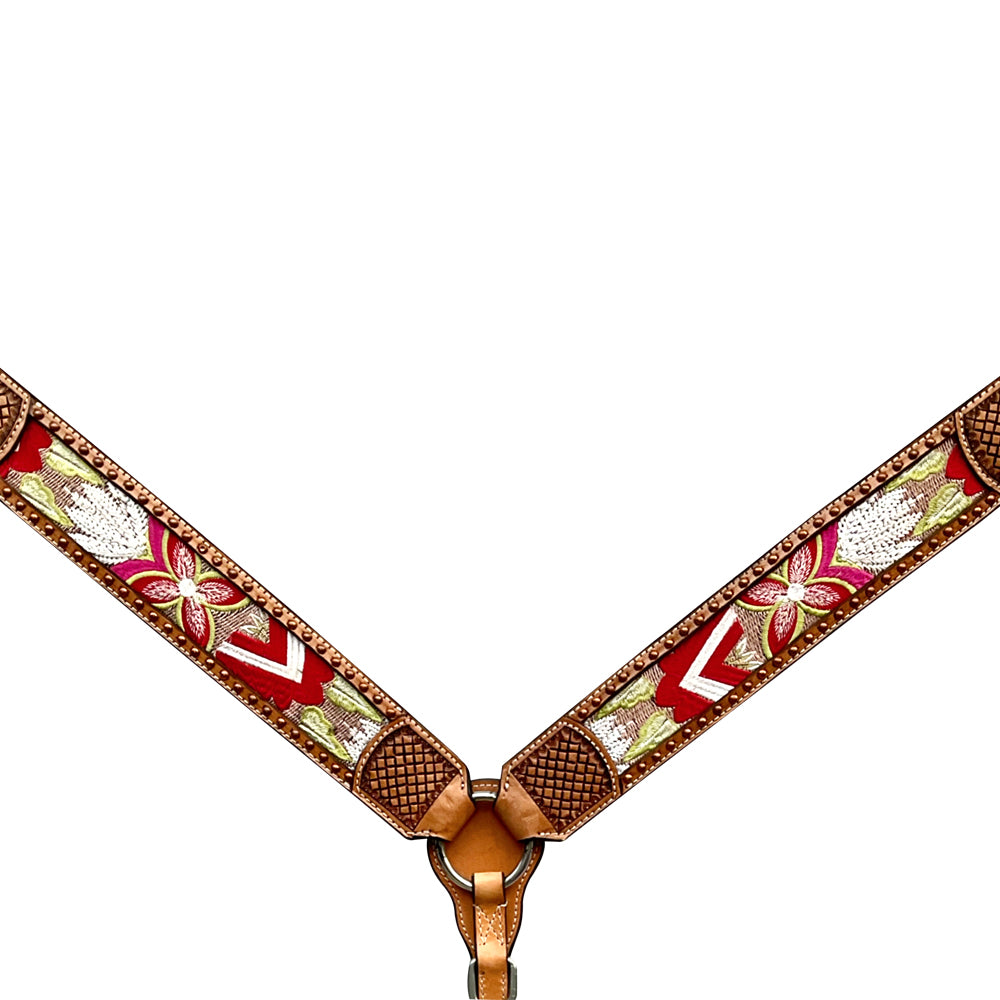 Bar H Equine Western Leather Horse Headstall & Breast Collar Brown